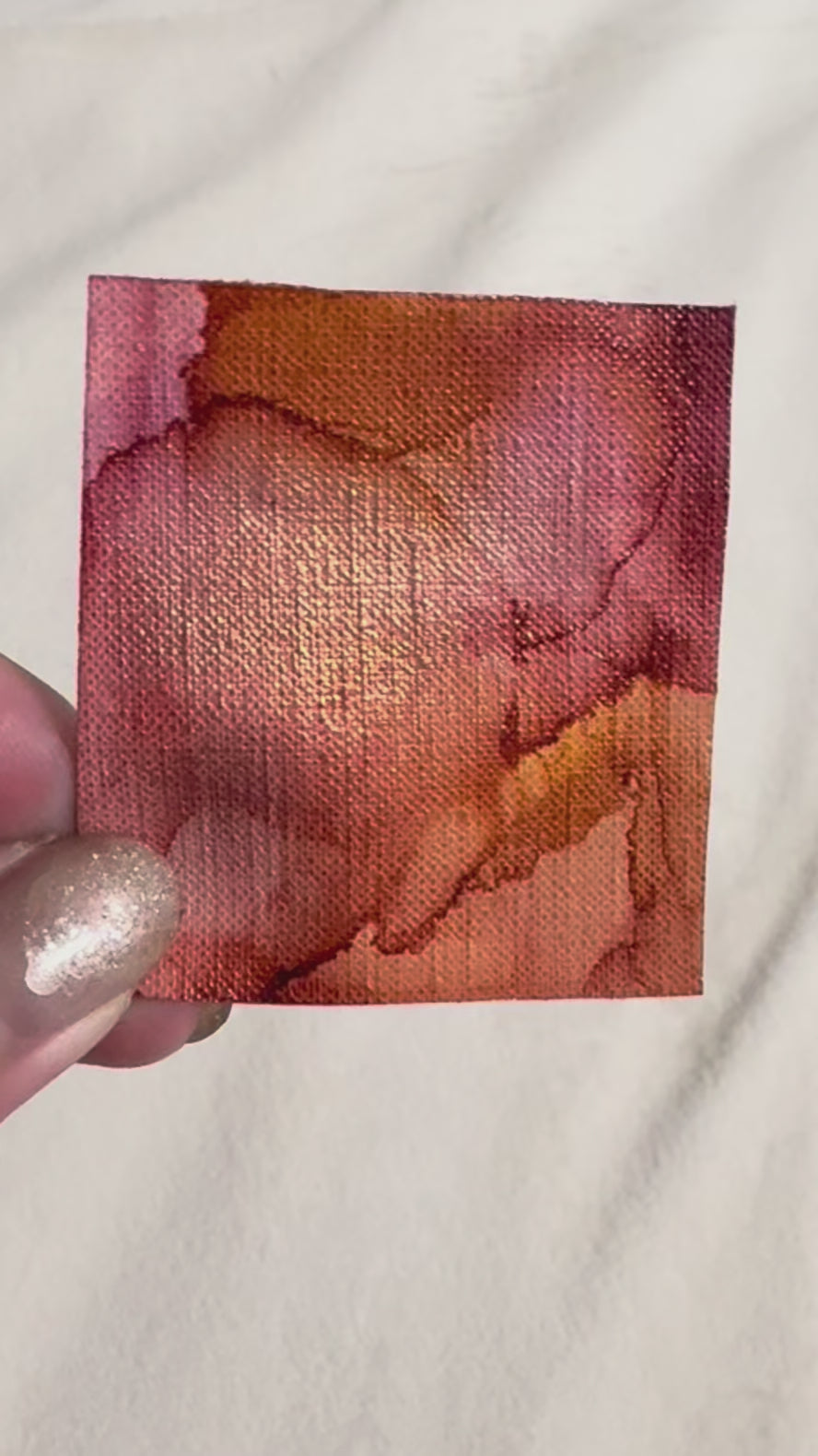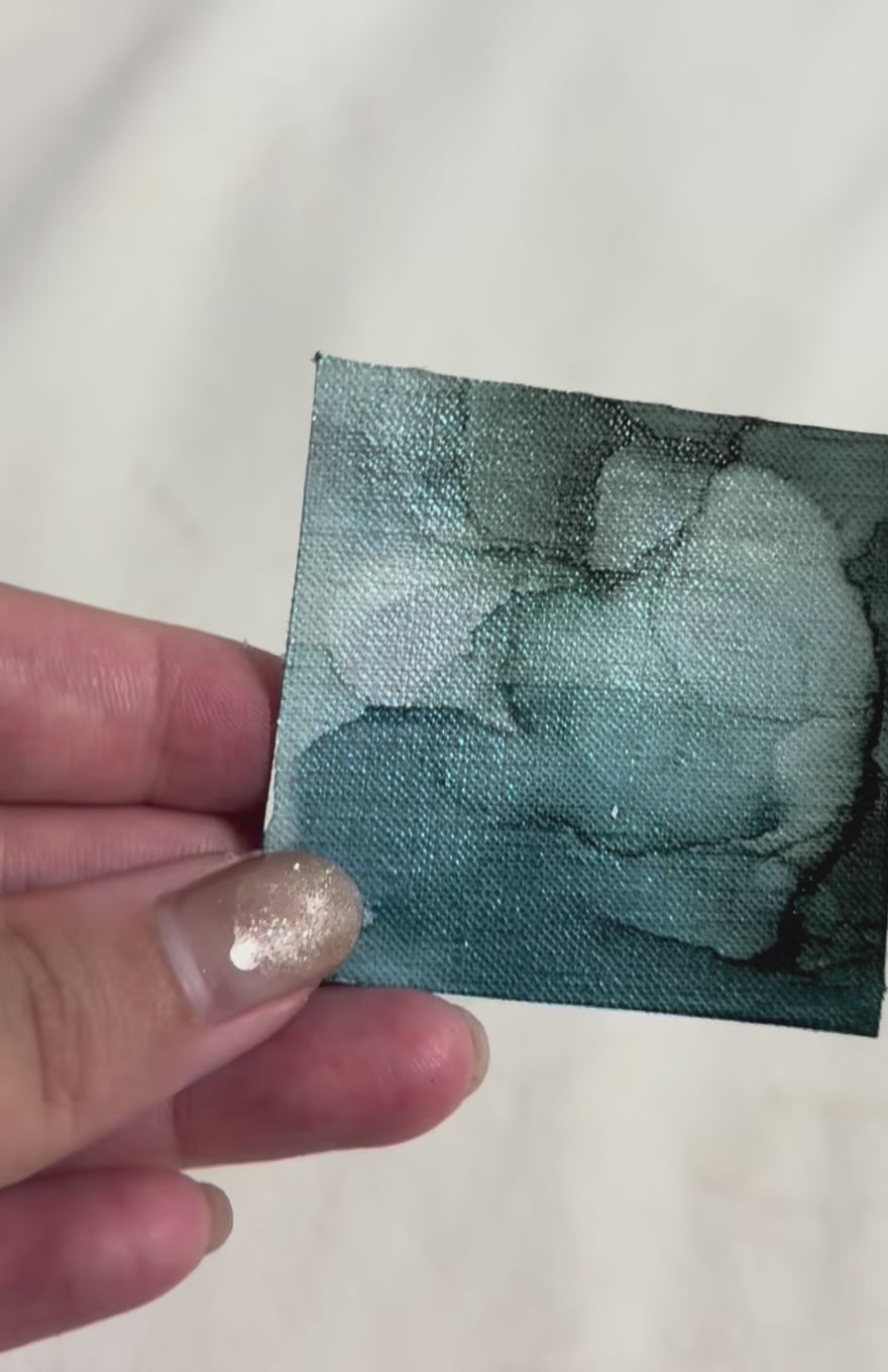 心の庭シリーズの原画です。サイズは複製と同じく5cm×5cmになります。印刷では表現できない、原画ならではの表現としてラメも使っています。